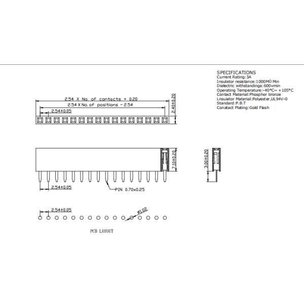 3.0 AMP 2.54 Mm Female Header Single Row Gold Tin Over Ni Plating Images |